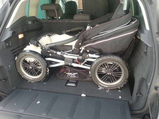 Barnvagnar är nog något som inte är riktigt tänkt att transporteras i denna bil, och som synes rymdes inte barnvagnen den “rätta” och enklaste vägen, utan jag blev tvungen att ställa den på tvären. Dessutom är ett barnvagslyft in i bagaget på Peugeot 3008 HYbrid4 inte det bästa lyftet man kan göra för ryggen, det är alldeles för högt upp och dessutom måste man som sagt vrida barnvagnen, men den rymdes.